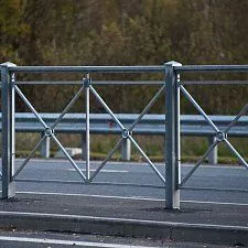 Перильные ограждения представляют собой надежные конструкции для обеспечения безопасности на пешеходных переходах и мостовых сооружениях. Изделия изготавливаются из стальных элементов с применением сварных и сборных соединений, обеспечивающих высокую прочность и долговечность. Конструкция включает вертикальные стойки, горизонтальные поручни и заполняющие элементы, образующие единую систему. Высота ограждения составляет 1,1 метра в соответствии с требованиями СП 59.13330.2020 для объектов доступной среды.